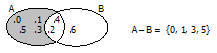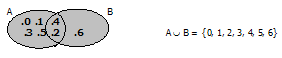 Exemplo: A = { 0, 1, 2, 3, 4, 5} e B = { 2, 4, 6}
