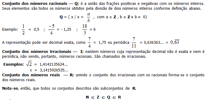 Conjunto dos números inteiros ¾ Z: Podem ser positivos, negativos ou zero, como elemento central, na reta numérica.