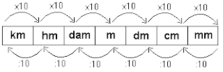 Para transformar m em dam (uma posição à esquerda) devemos dividir por 10.